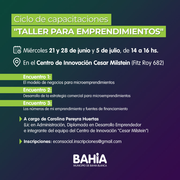 Desde el próximo miércoles 21 se brindarán talleres para emprendedores en el Centro de Innovación Cesar Milstein (Fitz Roy 682).
