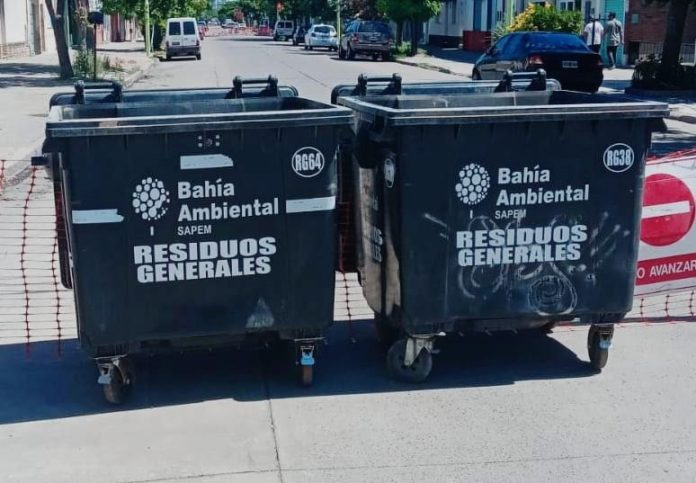 Debido a los trabajos de puesta en valor en las calles Garibaldi (entre Alberdi y Maipú) y Falucho (entre Maipú y Caseros), se dispusieron contenedores para que vecinos y vecinas depositen sus bolsas de residuos.