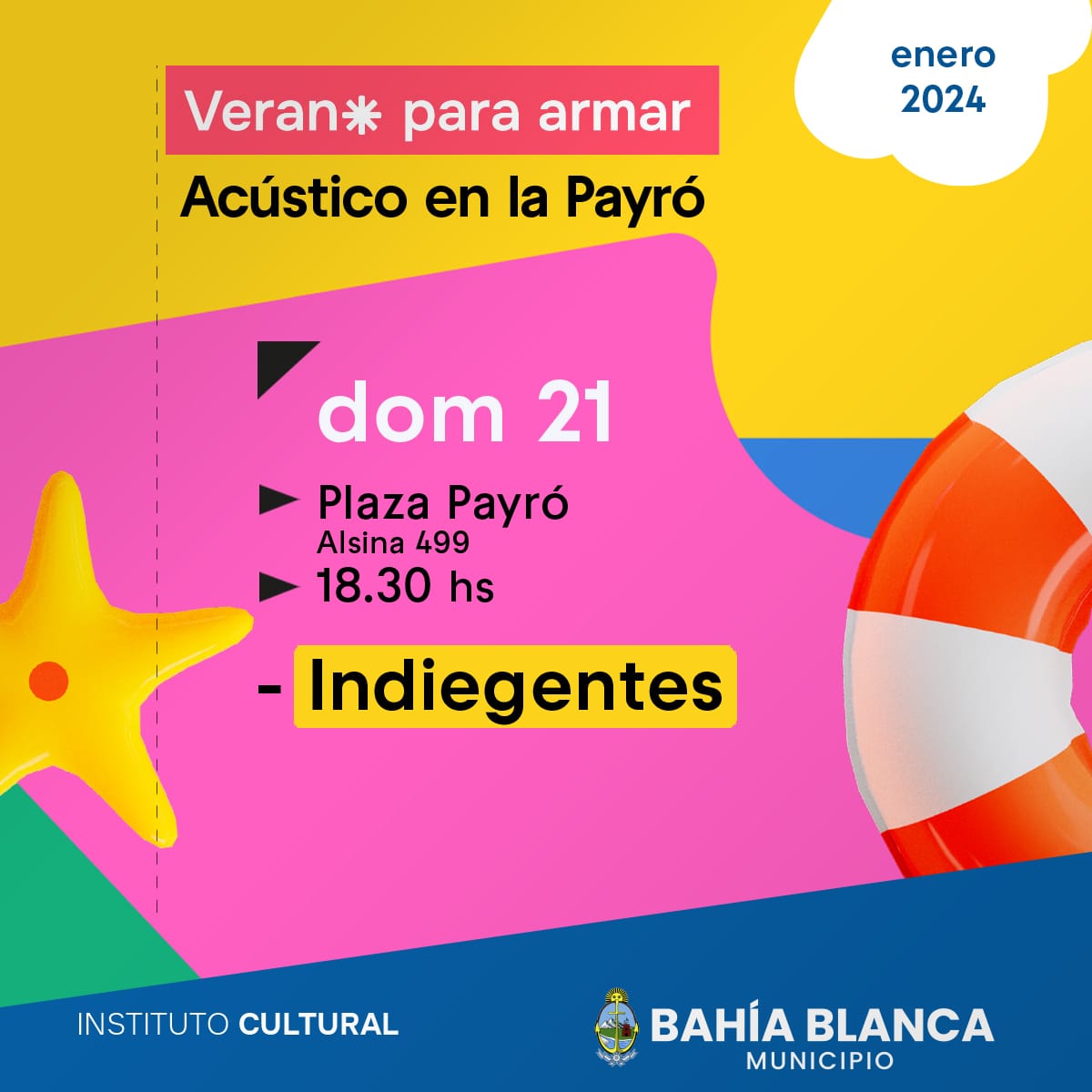 A las 18 hs, recital acústico de Indiegentes en la plaza Payró (Alsina 499).