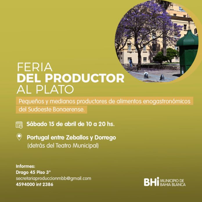 El próximo sábado, entre las 10 y las 20 hs, en calle Portugal e/Zeballos y Dorrego, se llevará a cabo la 1° edición de la Feria “Del productor al plato”, una Feria local con alto impacto regional, y que reunirá a pequeños y medianos productores de alimentos y bebidas como eslabón estratégico en la cadena de abastecimiento de la ciudad.